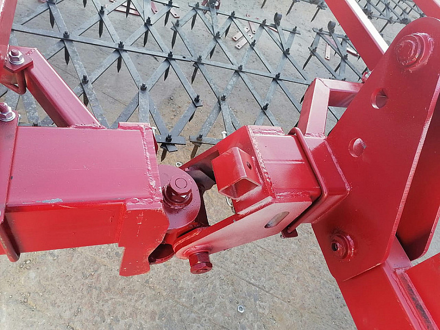 Тяга страховочная представляет из себя толстостенную трубу особой марки стали служащая как растяжка крыльев. Предотвращающая вылавливание крыльев во время работы. Механизм запирание представляет собой замковый рычаг – замыкается автоматически при переводе бороны в рабочее положение. Размыкание происходит тоже автоматически при переводе бороны в транспортное положение.